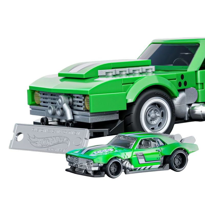 • Acelere fundo com este modelo montável do Camaro Custom 1968, em escala 1:32, da Mattel Brick Shop! Este kit cheio de detalhes inclui adesivos para personalização, uma placa exclusiva e um carrinho metálico combinando. Descubra todos os modelos da linha Speed Series e monte sua coleção! Inclui adesivos personalizados e 2 jogos de calotas para seu carro.