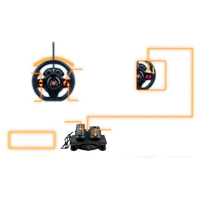 • Possui sensor de gravidade que identifica os movimentos para direita e esquerda e simula direção, pedais no chão com acelerador e ré que funcionam em conjunto. O carrinho alcança até 10 metros de distância! Possui luz de LED nos faróis para deixar a brincadeira ainda mais realista.