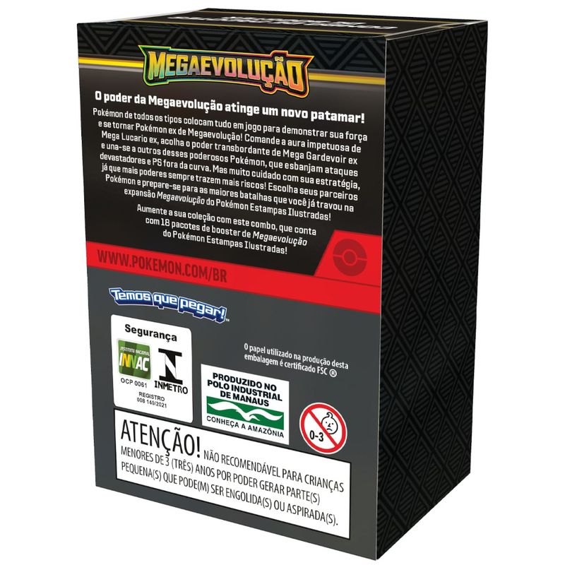 • Pokémons de todos os tipos colocam tudo em jogo para demonstrar sua força e se tornar Pokémon ex de Megaevolução! Comande a aura impetuosa de Mega Lucario ex, acolha o poder transbordante de Mega Gardevoir ex e una-se a outros desses poderosos Pokémon, que esbanjam ataques devastadores e PS fora de curva.