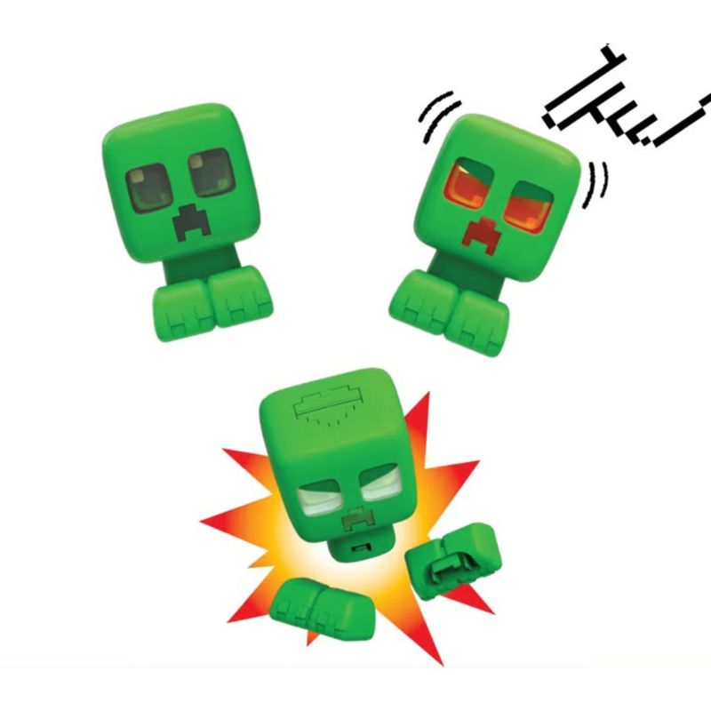 • Os fãs de Minecraft vão adorar o brinquedo My Pet Creeper, com luzes, sons e um efeito de explosão superdivertido! A ação interativa é comandada por dois botões. Pressione o botão frontal, na cabeça do boneco, para mudar as luzes coloridas e as expressões do Creeper, além de explodir suas pernas que soltam. Pressione o botão traseiro para ativar mais luzes e sons. Continue pressionando para ativar a função Charged Creeper, com luzes azuis e efeitos elétricos! E mais, ele esconde uma reação secreta para ser descoberta! Crianças e colecionadores vão reviver cenas clássicas do jogo ou criar novas aventuras cheias de ação. Este brinquedo colecionável de Minecraft é indicado para crianças a partir dos 06 anos de idade.
