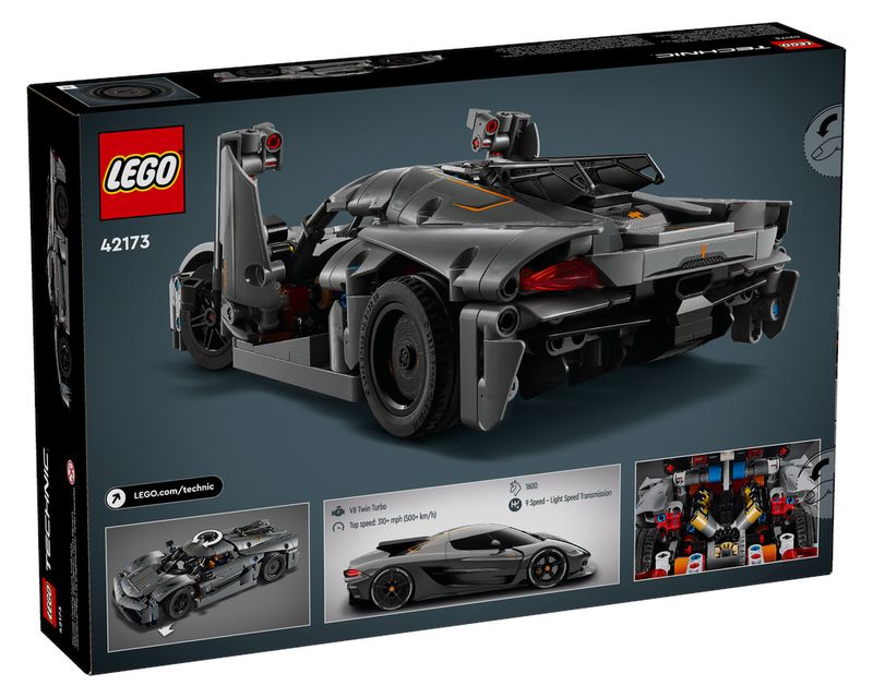 • Inspire fãs a construir seu próprio hipercarro de luxo com o conjunto de construção de hipercarro LEGO Technic Koenigsegg Jesko Absolut Grey (42173). Um desafio gratificante aguarda os fãs que adoram modelos de carros para construir enquanto montam todos os detalhes. E a construção é apenas o começo! Este brinquedo presta homenagem a um dos hipercarros mais rápidos do mundo e vem repleto de recursos para os entusiastas de automóveis descobrirem.