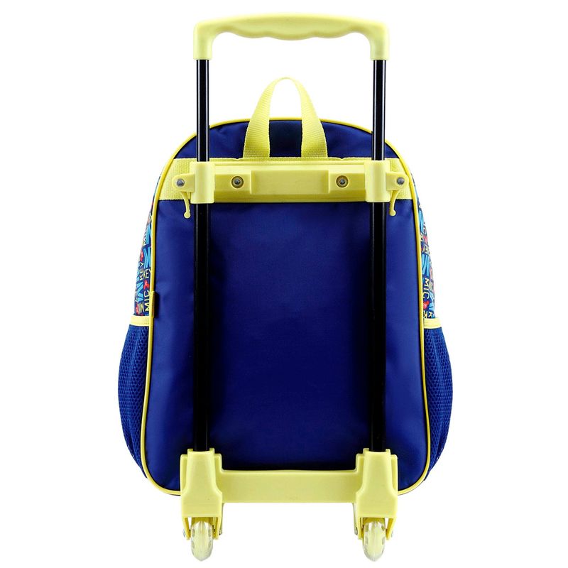 • Em tamanho 14", produzida em poliéster resistente e estampado. Painel frontal PVC Cristal - Compartimento principal amplo, 2 bolsos laterais mesh, zíper com puxadores simples e alça de mão em nylon. Carrinho em metal com travas.