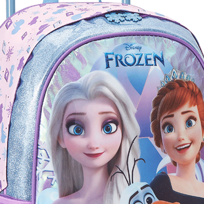 • A magia do Reino de Arendelle invadiu a Xeryus com esta mochila Frozen! Ela é feita de poliéster resistente, recorte de glitter envernizado, frente em PVC holográfico e puxador do zíper de metal personalizado. Possui um compartimento amplo, alças ajustáveis e acolchoadas, proporcionando maior conforto.